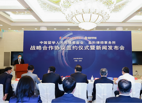 8月8日,中國留學人才發(fā)展基金會與盈科律師事務所戰(zhàn)略合作協(xié)議簽約儀式暨新聞發(fā)布會在北京舉行。