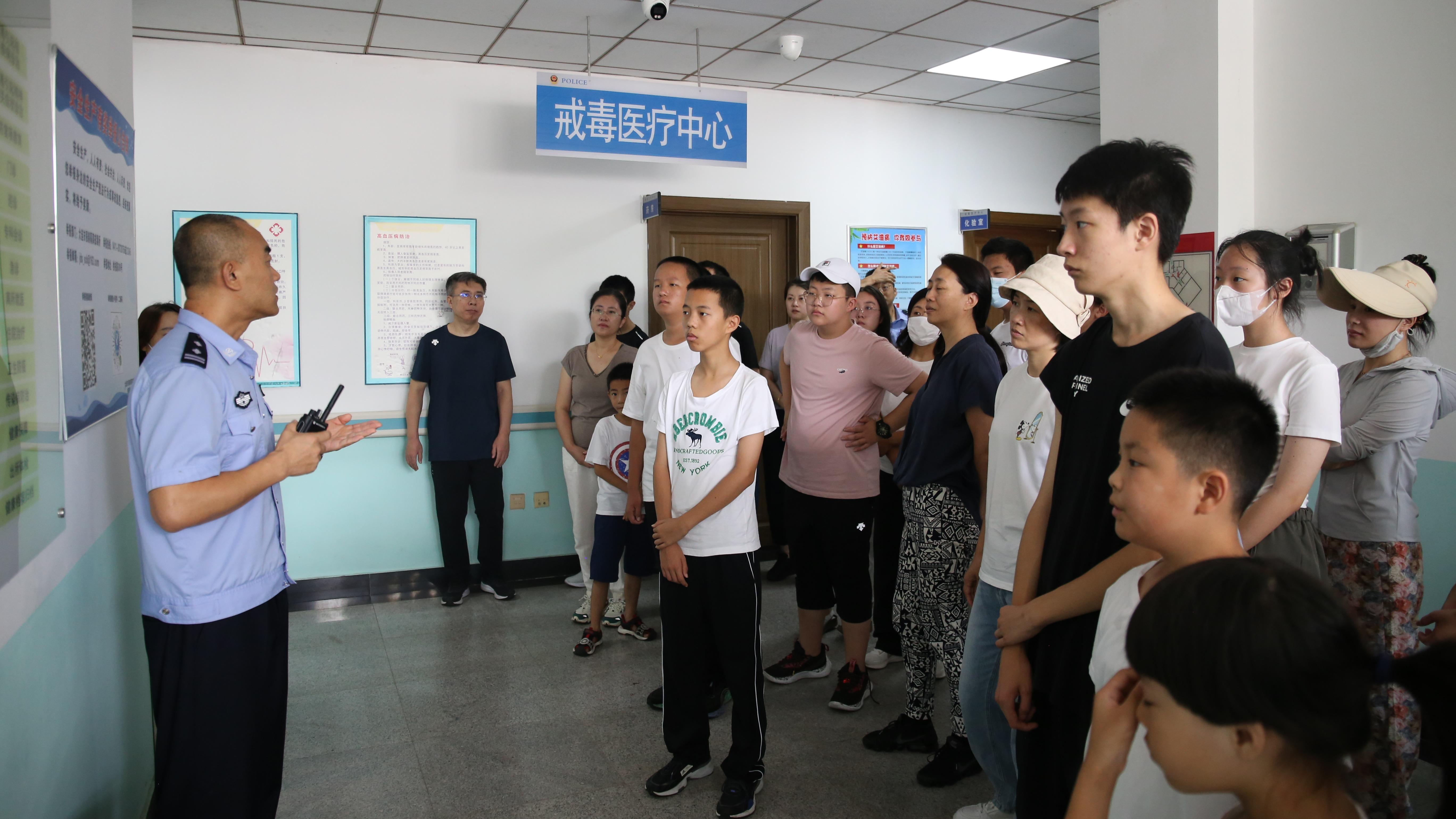 在戒毒宣傳教育展廳,家長和孩子們仔細(xì)聆聽了大連市戒毒所民警講授的國家禁毒方針政策、當(dāng)前禁毒戒毒形勢、毒品危害以及拒毒防毒知識。隨后,孩子們和家長參觀了市戒毒所醫(yī)院,通過了解吸毒人員脫毒治療和心理康復(fù)過程、觀看禁毒知識宣傳片,對毒品的危害性有了更加直觀、更加深刻的認(rèn)識。