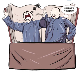 除此之外,李士強(qiáng)發(fā)現(xiàn),相聲傳統(tǒng)的表演形式?jīng)Q定了相聲是著作權(quán)爭議的高發(fā)區(qū)。相聲自誕生以來,“學(xué)唱”就是相聲藝人的基本表演技能,許多相聲段子中含有“學(xué)唱”的內(nèi)容,更有以“學(xué)唱”為主的相聲作品,現(xiàn)行法律體系不能給相聲藝人提供更好的“避風(fēng)港”,因此,相聲表演中的“學(xué)唱”,如無歌曲權(quán)利人的許可或法定免責(zé)事由,均涉嫌侵犯他人著作權(quán)。