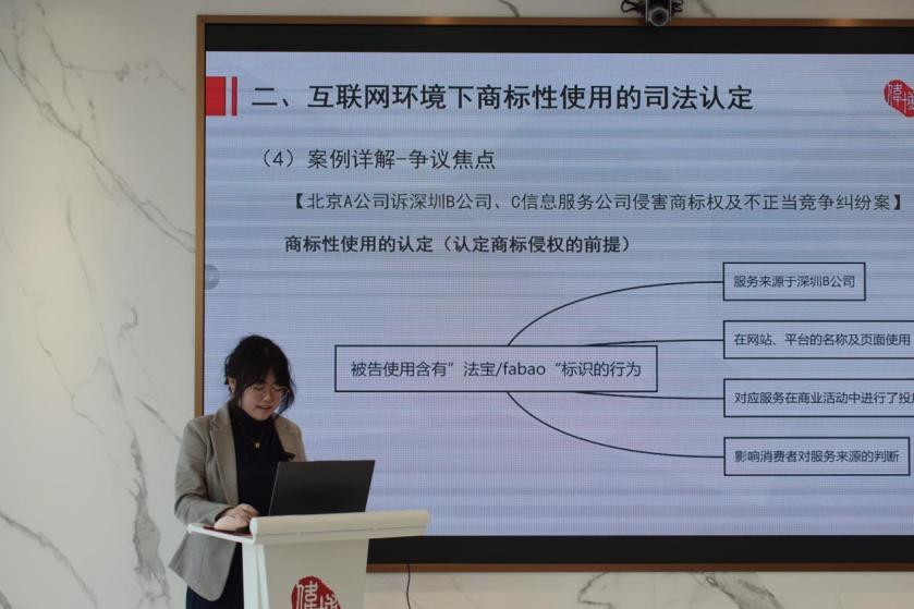 偉博律所涉外部副部長周易凡以《互聯(lián)網(wǎng)環(huán)境下商標(biāo)性使用的司法認(rèn)定》為題,分析討論了互聯(lián)網(wǎng)環(huán)境下商標(biāo)性使用的新場景,結(jié)合具體案例的司法認(rèn)定分享了前沿實務(wù)啟示。周易凡結(jié)合司法實踐中的經(jīng)典案例,系統(tǒng)闡釋了互聯(lián)網(wǎng)商標(biāo)性使用的認(rèn)定邊界、核心判斷標(biāo)準(zhǔn),以及認(rèn)定商標(biāo)侵權(quán)行為的判斷標(biāo)準(zhǔn),呼吁互聯(lián)網(wǎng)環(huán)境下的商標(biāo)性使用認(rèn)定需兼顧技術(shù)特征與商業(yè)邏輯,司法機關(guān)需在保護商標(biāo)權(quán)與促進技術(shù)創(chuàng)新間尋求平衡。