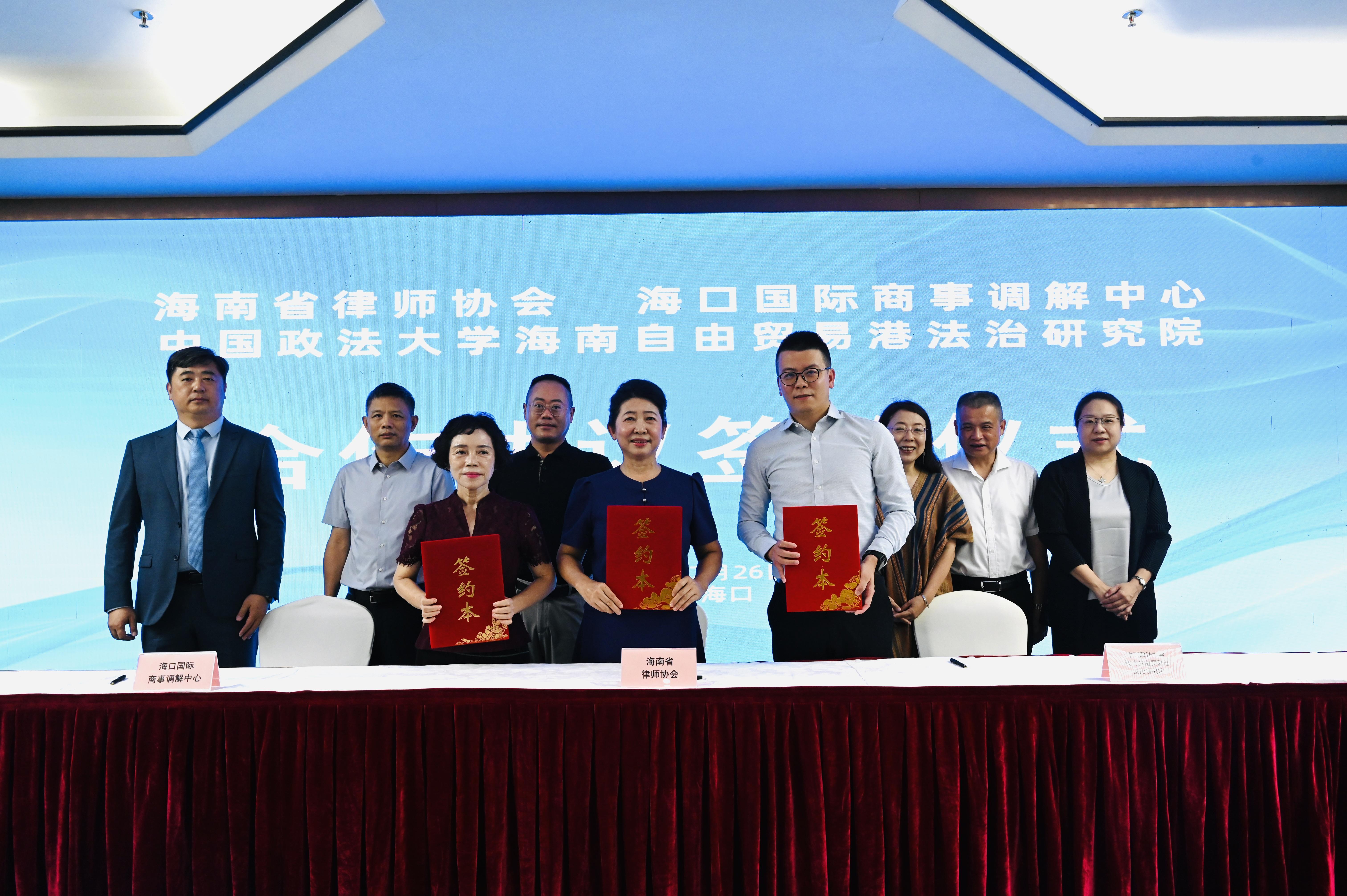 7月26日上午,海南省律師協(xié)會、??趪H商事調(diào)解中心、中國政法大學海南自由貿(mào)易港法治研究院合作協(xié)議簽約儀式暨海南自由貿(mào)易港法治政府建設(shè)主題講座在海口舉行。