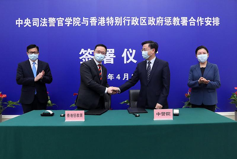 圖為4月26日,中央司法警官學院與香港特別行政區(qū)政府懲教署簽署了相關合作安排。攝影 李光印