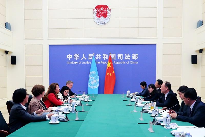 司法部部長(zhǎng)賀榮在京會(huì)見聯(lián)合國(guó)維也納辦事處總干事兼聯(lián)合國(guó)毒罪辦執(zhí)行主任瓦利一行。