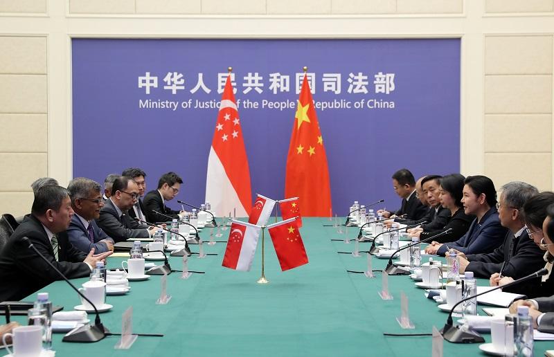司法部副部長王振江,新加坡駐華大使陳海泉,新加坡最高法院大法官莊泓翔、施奇恩、艾迪·阿都拉等參加會見。