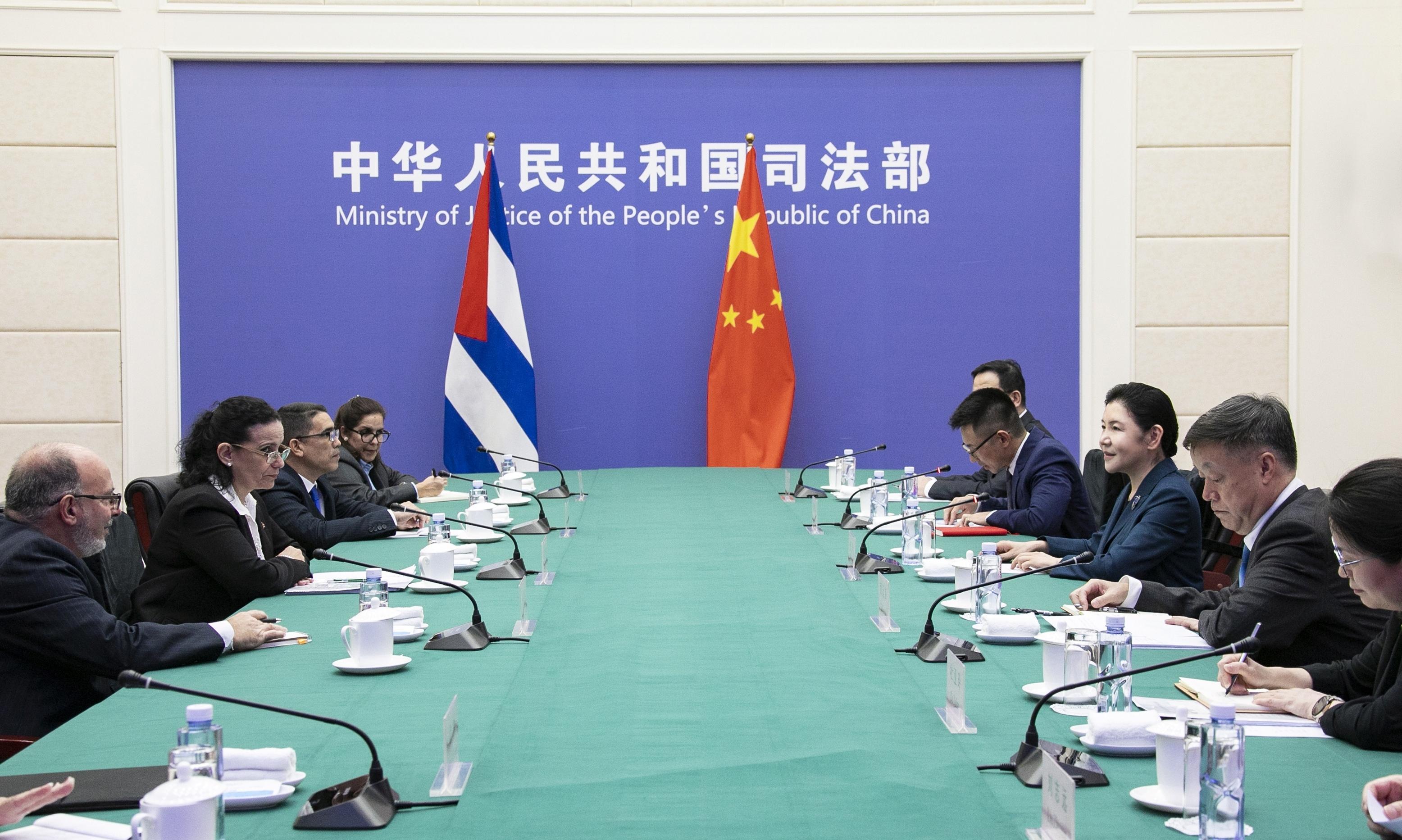 古巴駐華大使白詩德、古巴副總檢察長卡拉巴洛參加會見。