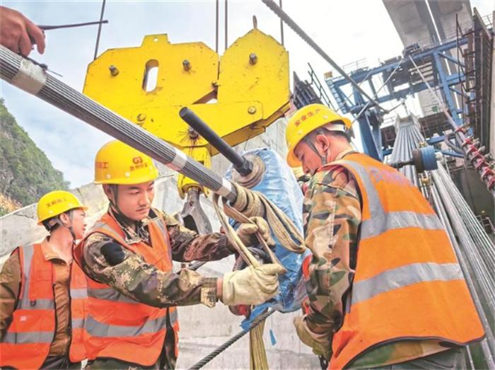 6月6日,經(jīng)過8小時的牽引架設(shè),由貴州交建集團(tuán)所屬橋梁集團(tuán)承建的在建世界第一高橋——花江峽谷大橋第一條智慧主纜索股成功安裝,實(shí)現(xiàn)在2378米長的主纜上采用光柵光纖(復(fù)合碳纖維絲)進(jìn)行應(yīng)力監(jiān)測,該應(yīng)力應(yīng)變監(jiān)測技術(shù)在大跨徑懸索橋上的運(yùn)用屬國際首創(chuàng),邁出了懸索橋智能健康監(jiān)測創(chuàng)新賦能的關(guān)鍵一步。