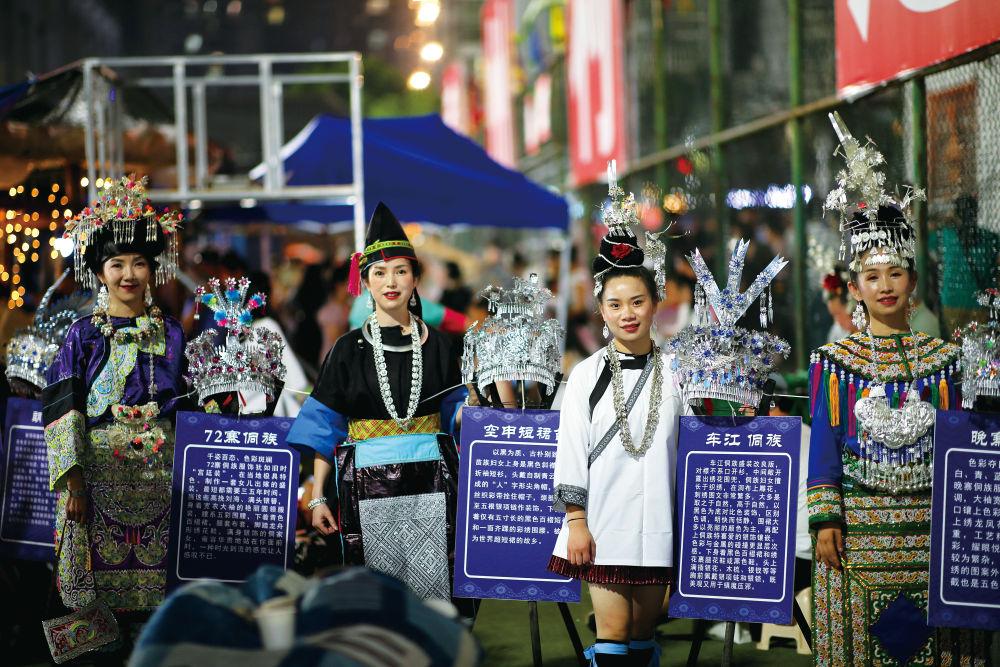 “村超”現(xiàn)場,當(dāng)?shù)厣贁?shù)民族身著盛裝,向外來游客展示本民族服飾文化