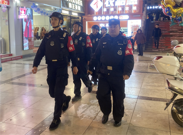 華燈初上,貴州省貴陽市南明區(qū)青云市集人頭攢動。位于市集大門口的警務(wù)站警燈閃爍,一隊隊“藏藍(lán)身影”來回穿梭,守護(hù)著城市的煙火氣。