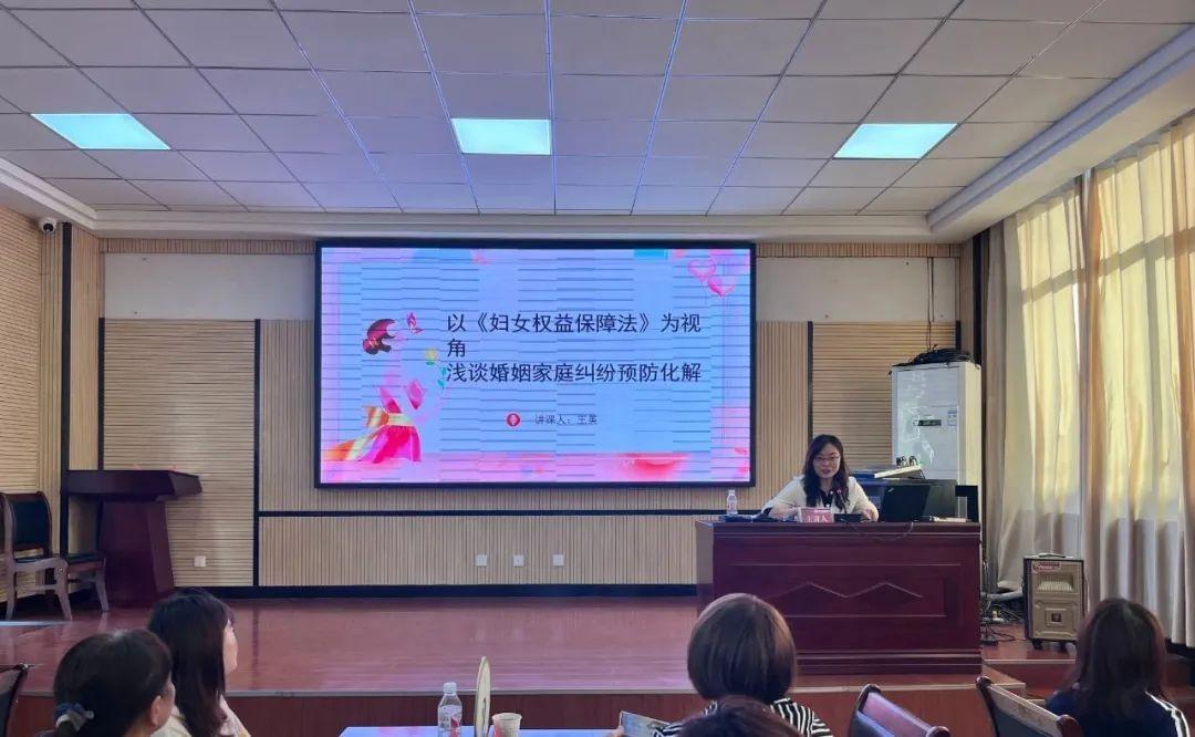 王英以《以〈婦女權(quán)益保障法〉為視角,淺談婚姻家庭糾紛預(yù)防化解》為主題,結(jié)合自身工作經(jīng)驗和審判實踐中的典型案例,用通俗易懂的語言講解婦女權(quán)益保護(hù)相關(guān)法律法規(guī),增強(qiáng)婦聯(lián)干部的法律意識,進(jìn)一步提高婦聯(lián)干部運用法治思維和法治方式維護(hù)合法權(quán)益、化解矛盾糾紛的能力和水平。