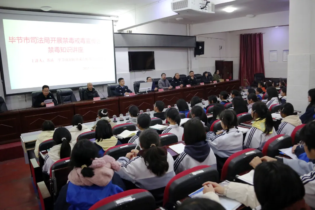 近日,貴州省畢節(jié)強制隔離戒毒所(以下稱畢節(jié)所)攜手畢節(jié)市司法局、威寧縣司法局及畢節(jié)所駐威寧縣專地融合工作站一起走進威寧縣第九中學開展以“青春無‘毒’,綠色守護”為主題禁毒宣傳活動。