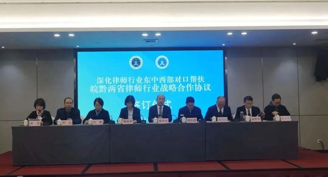 為進(jìn)一步推動(dòng)律師行業(yè)東中西部對口幫扶機(jī)制走深走實(shí),近日,安徽省、貴州省《關(guān)于深化律師行業(yè)東中西部對口幫扶 皖黔兩省律師行業(yè)戰(zhàn)略合作協(xié)議》簽訂儀式在貴陽舉行。
