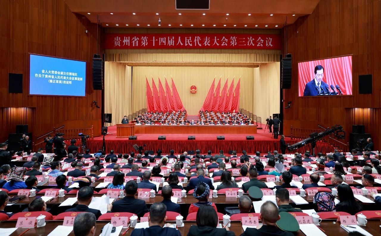 1月19日,貴州省第十四屆人民代表大會第三次會議在貴陽開幕,受貴州省人大常委會委托,貴州省人大常委會副主任郭瑞民作關(guān)于貴州省人民代表大會議事規(guī)則修正草案的說明。
