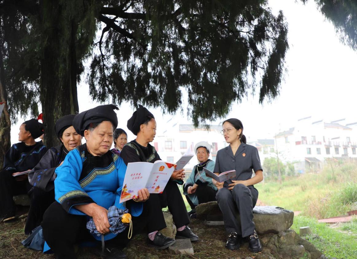 作為一名水族法官,蒙勝翠還結(jié)合本地水族群眾講傳統(tǒng)、重習(xí)俗,蒙勝翠就借助“水書先生”“繡娘”的智慧與經(jīng)驗(yàn),將水家文化習(xí)俗與現(xiàn)代法治精神相融合,通過開展“水語法庭”“布依語法庭”巡回審判,聯(lián)合“水書先生”等鄉(xiāng)賢參與矛盾糾紛調(diào)處,成立“繡娘調(diào)解室”、組建“水鄉(xiāng)巾幗調(diào)解隊(duì)伍”等,開展多方聯(lián)動(dòng),實(shí)現(xiàn)情理法融合,促進(jìn)矛盾糾紛實(shí)質(zhì)化解。