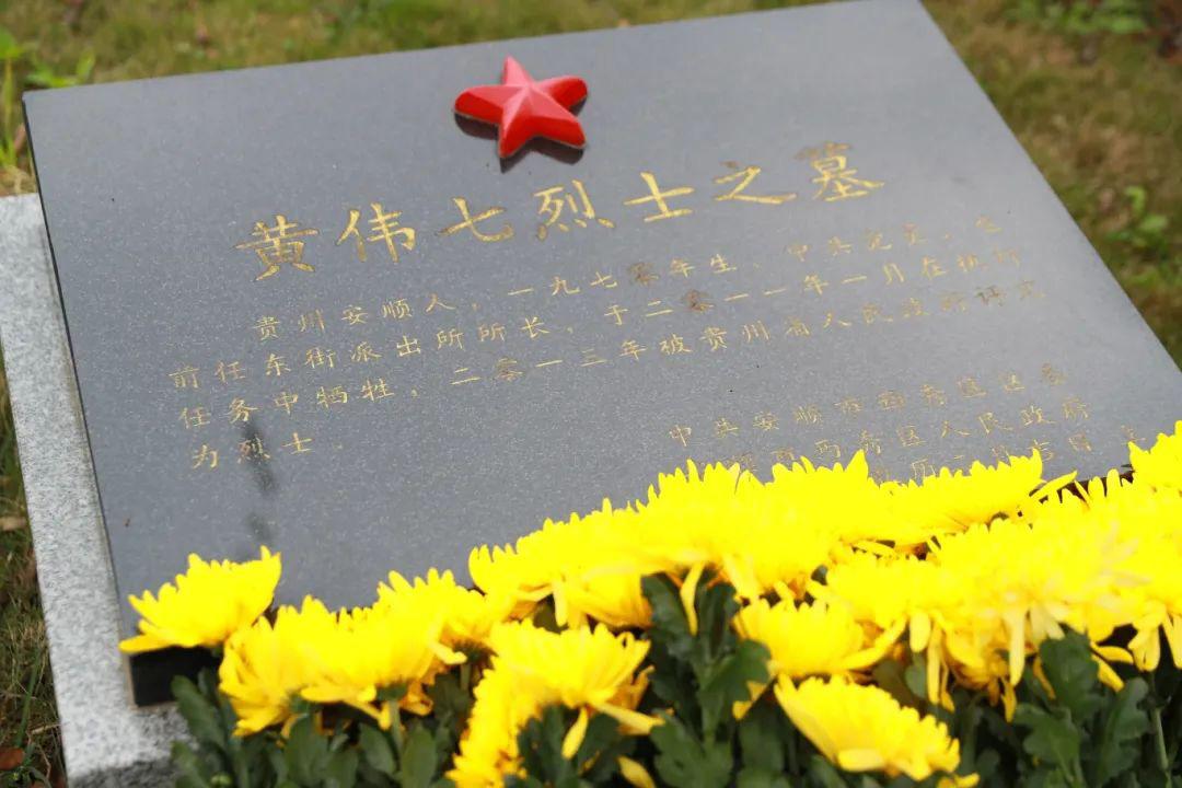 緬懷儀式莊嚴肅穆,參加活動的民警代表警容整肅,懷著無比崇敬的心情向革命烈士紀念碑脫帽默哀、敬獻花籃;并前往公安英烈王東、黃偉七墓前瞻仰獻花,深切表達對戰(zhàn)友的緬懷之情。和平年代,公安隊伍是一支犧牲最多、奉獻最大的隊伍。據(jù)悉,自新中國成立以來,安順公安有51名民輔警因公犧牲,其中:烈士15人,一級英模1人,二級英模6人。