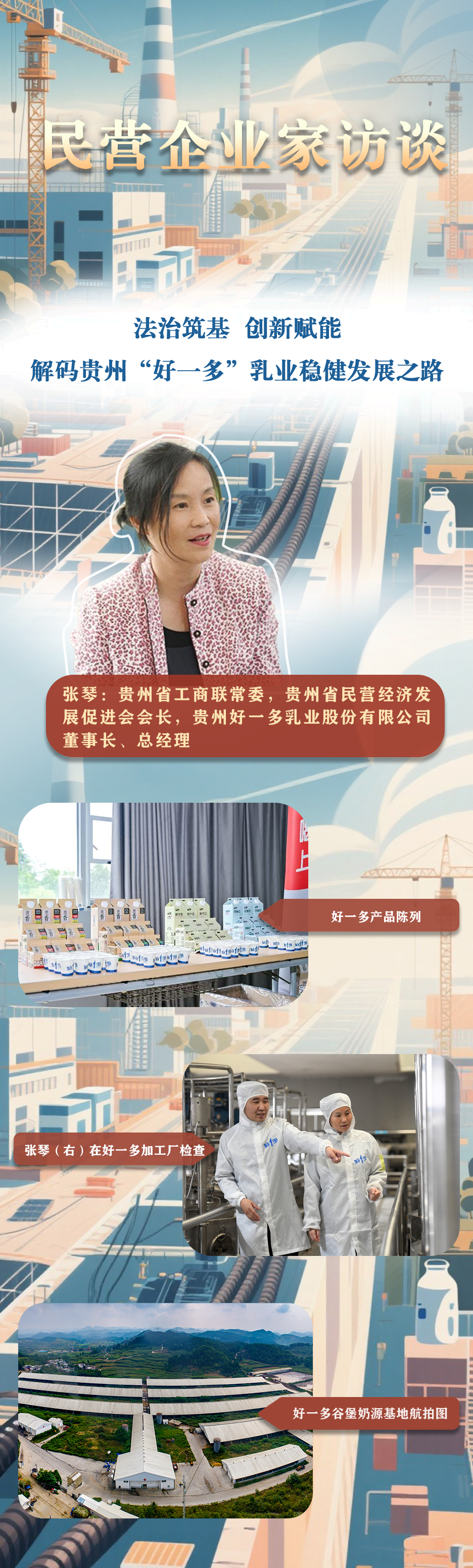 近年來(lái),隨著貴州文旅市場(chǎng)的火爆出圈,打卡“好一多”網(wǎng)紅酸奶成為貴州行必不可少的一個(gè)環(huán)節(jié),這個(gè)“網(wǎng)紅”酸奶有什么神奇之處呢?本期民營(yíng)企業(yè)家訪談,法治網(wǎng)·法治黔行記者對(duì)話貴州省工商聯(lián)常委,貴州省民營(yíng)經(jīng)濟(jì)發(fā)展促進(jìn)會(huì)會(huì)長(zhǎng),貴州好一多乳業(yè)股份有限公司董事長(zhǎng)、總經(jīng)理張琴,揭秘貴州網(wǎng)紅酸奶“好一多”如何以法治賦能企業(yè)穩(wěn)健發(fā)展。