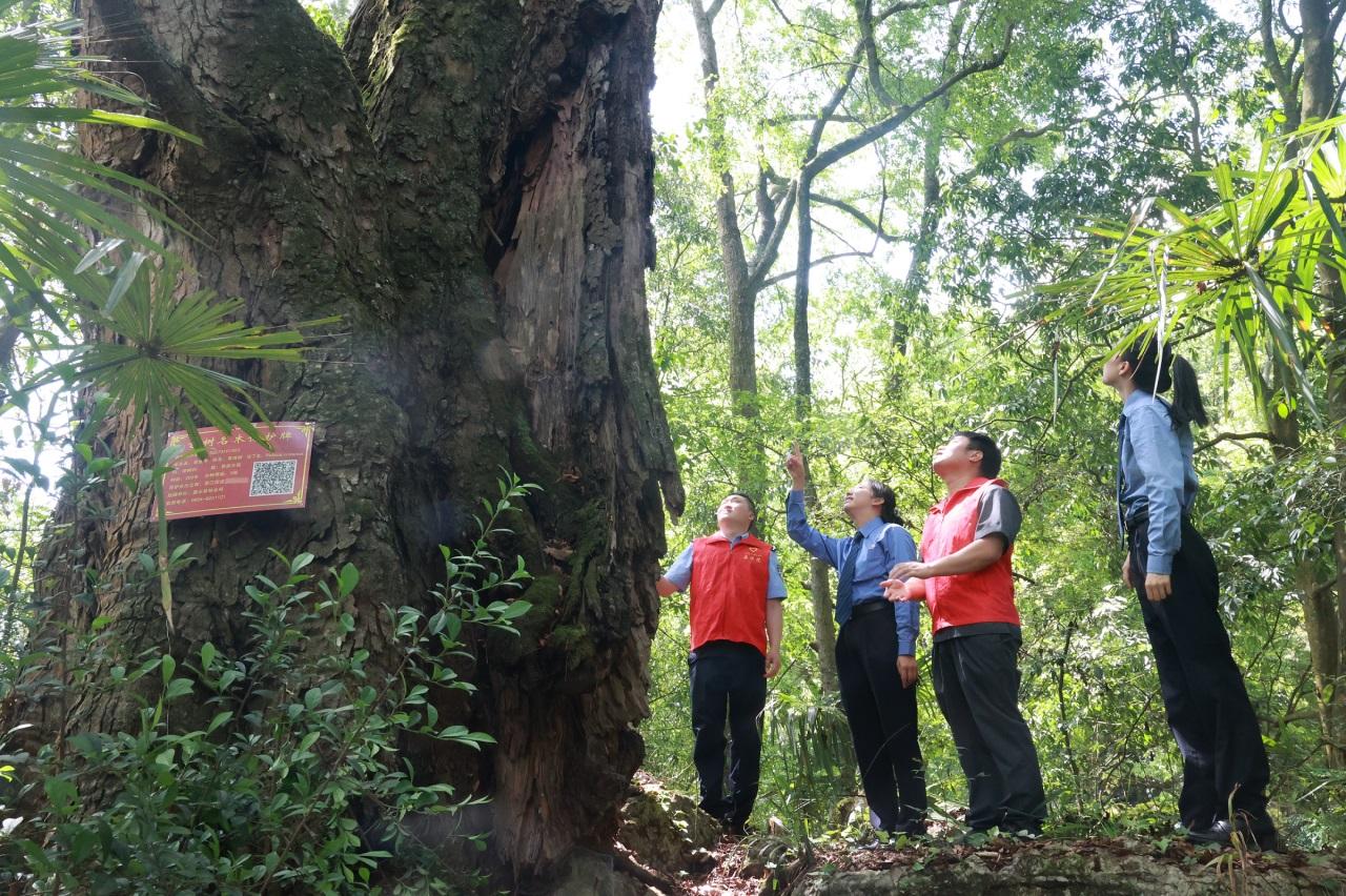 名木古樹(shù)作為林業(yè)資源中的珍貴瑰寶,不僅是自然生態(tài)的重要組成部分,更承載著人民群眾的鄉(xiāng)愁情思。惠水法院邀請(qǐng)了縣檢察院前往濛江社區(qū)新哨村巡查掛牌保護(hù)的名木古樹(shù),開(kāi)展日常化管理保護(hù)工作,并向當(dāng)?shù)卮逦瘯?huì)、村民代表進(jìn)行普法宣傳,指導(dǎo)基層組織將環(huán)境保護(hù)納入村規(guī)民約。以法治力量守護(hù)自然遺產(chǎn),凝聚生態(tài)保護(hù)共識(shí)。