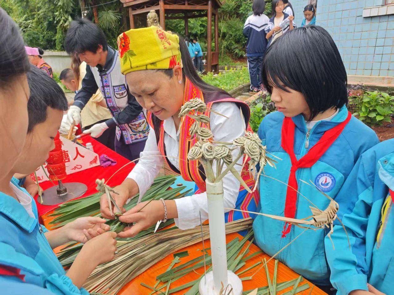 在傳承人與黨員志愿者的指導(dǎo)下,孩子們化身“小小傳承人”:揉捏面團(tuán)嘗試塑形,手握糖勺勾勒?qǐng)D案,學(xué)習(xí)編織靈動(dòng)的草編蚱蜢或斑斕苗線手鏈,近距離感受吹糖人的神奇。生動(dòng)有趣的沉浸式體驗(yàn),有效點(diǎn)燃了青少年對(duì)本土文化的熱愛,在幼小心田播撒下守護(hù)文化根脈、增強(qiáng)文化自信的種子。