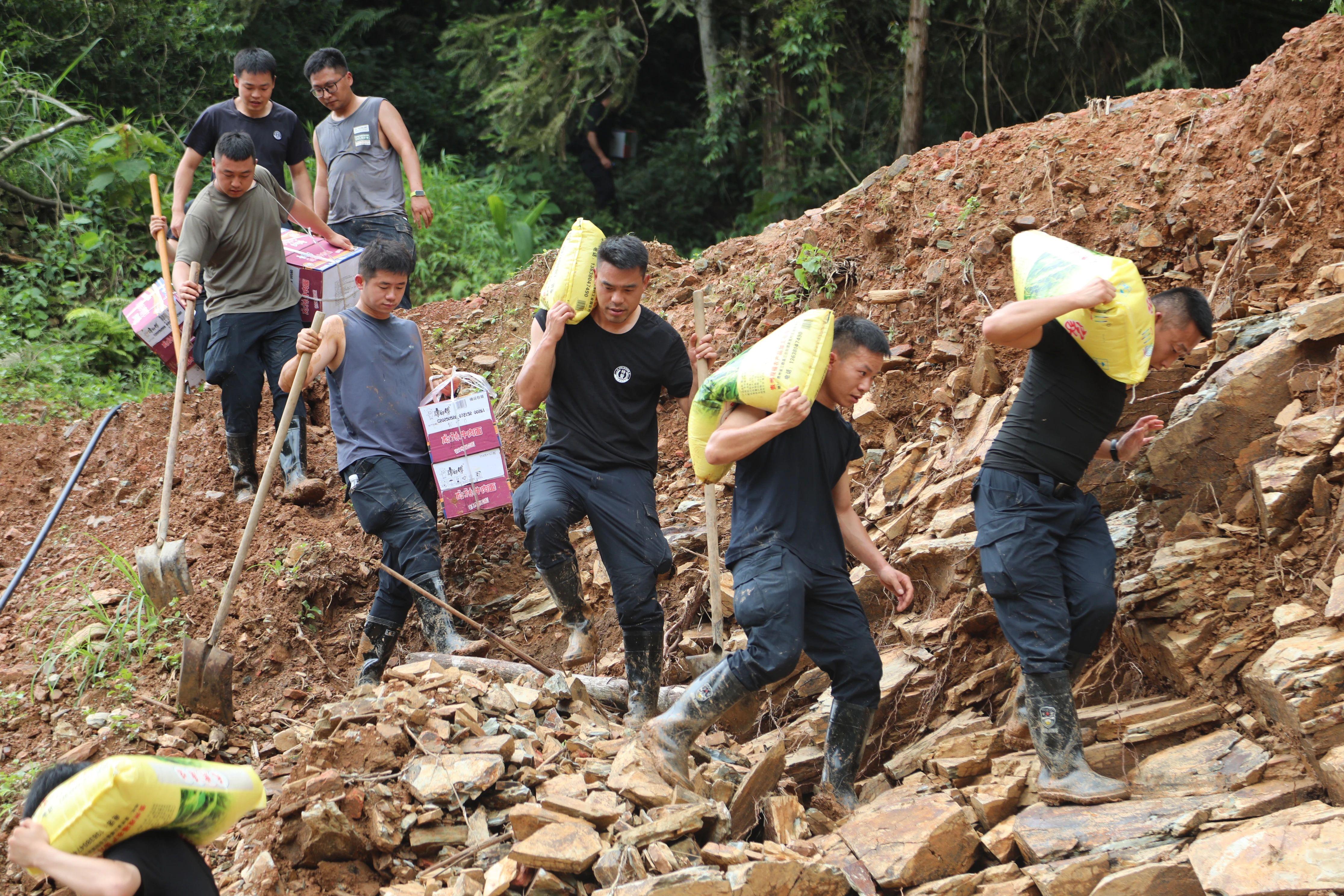 近日,持續(xù)強(qiáng)降雨導(dǎo)致貴州省黔南州三都縣多處受災(zāi),最嚴(yán)重的都江鎮(zhèn)部分村落出現(xiàn)道路沖毀、斷水?dāng)嚯姷木o急情況,部分村落物資難以進(jìn)入群眾家中。為切實(shí)保障受災(zāi)群眾基本生活需求,連日來,黔南州公安局調(diào)動特警支隊(duì)和都勻、獨(dú)山、甕安等地警力,與三都縣公安局一起奔赴都江鎮(zhèn)開展清淤工作,并將物資送進(jìn)群眾家中。
