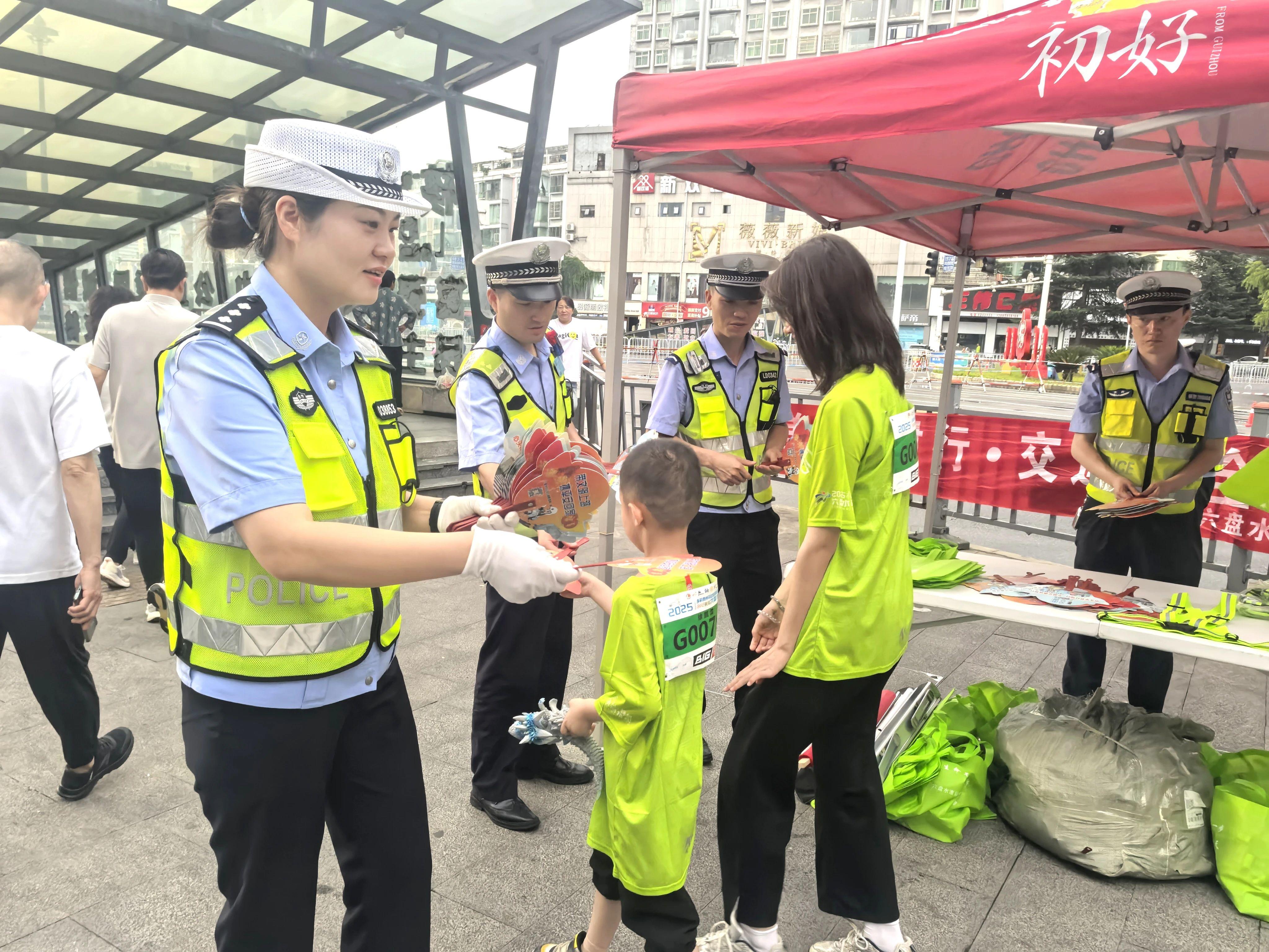 “被看見才安全”——暖心發(fā)放反光安全帶針對參賽者的特點,六盤水交警創(chuàng)新服務舉措,在活動現場設置宣傳服務臺向游客、群眾免費發(fā)放反光安全帶、小扇子,并現場講解夜間出行安全知識,提醒大家“被看見才安全”,有效提升夜間出行安全系數。