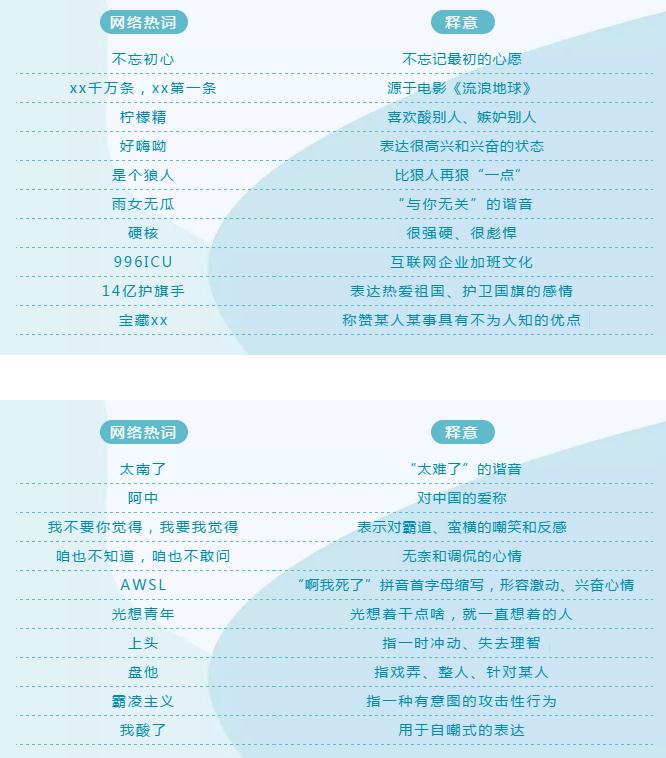 法制網(wǎng)監(jiān)測(cè)中心(ID:fzwyqzx)綜合國(guó)家語(yǔ)言資源監(jiān)測(cè)與研究中心、《咬文嚼字》雜志、《語(yǔ)言文字周報(bào)》等權(quán)威發(fā)布,選取了2019年較有代表性的20個(gè)網(wǎng)絡(luò)熱詞。通過(guò)對(duì)這些網(wǎng)絡(luò)熱詞所反映的新特征進(jìn)行分析,總結(jié)我國(guó)網(wǎng)民輿論心態(tài)和網(wǎng)絡(luò)情感變化的四點(diǎn)新趨勢(shì)。