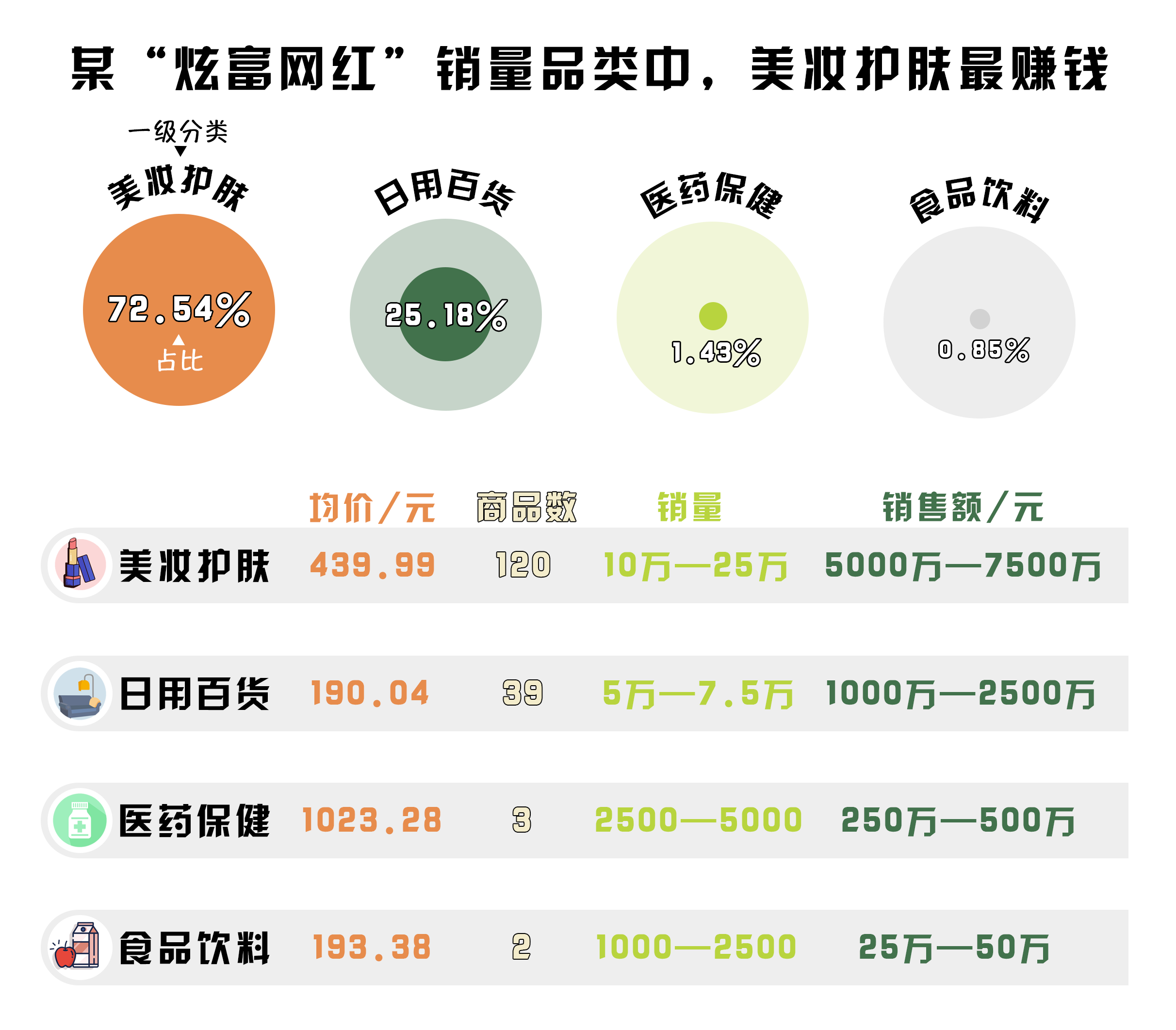 2.“炫富網(wǎng)紅”帶貨品類中,美妝護膚最賺錢