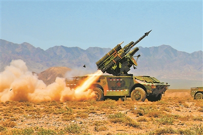 “發(fā)射!”一聲令下,幾枚導彈拖著尾焰撲向目標,成功摧毀“敵”機。