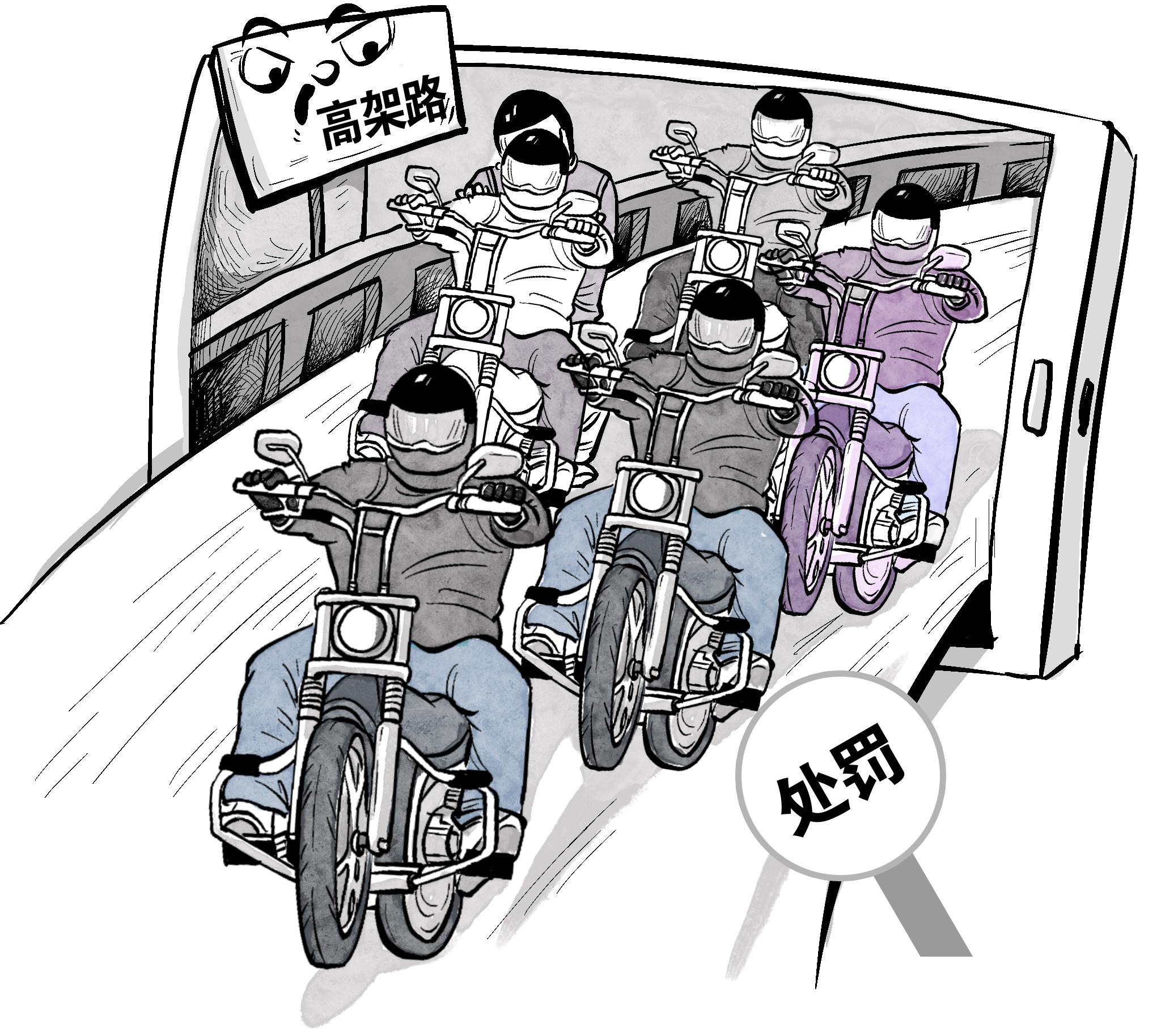近日,11名駕駛員駕駛摩托車組成車隊(duì)在江蘇省蘇州市一高架路上行駛,并拍視頻炫耀。由于蘇州明令禁止摩托車在高架路上通行,當(dāng)?shù)鼐剿煅杆僬归_(kāi)調(diào)查,通過(guò)調(diào)取監(jiān)控,鎖定11名駕駛員。最終,11人均被依法處以相應(yīng)處罰。