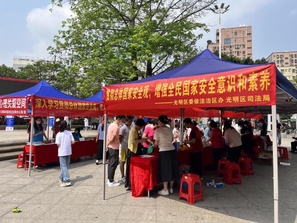 光明區(qū)委政法委聯(lián)合區(qū)司法局、玉塘街道辦等10家單位在轄內(nèi)黨建公園,圍繞“貫徹總體國(guó)家安全觀,增強(qiáng)全民國(guó)家安全意識(shí)和素養(yǎng),夯實(shí)以新安全格局保障新發(fā)展格局的社會(huì)基礎(chǔ)”這一主題,向過(guò)往的群眾就什么是國(guó)家安全、危害國(guó)家安全的行為、公民應(yīng)如何維護(hù)國(guó)家安全等內(nèi)容開展宣傳教育。