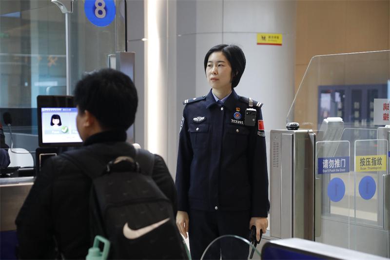 值班時(shí)劉嬙微認(rèn)真地關(guān)注著查驗(yàn)大廳的情況