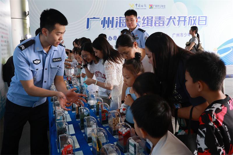 6月22日,廣州海關(guān)聯(lián)合廣州市少年宮舉辦“緝毒犬開(kāi)放日”活動(dòng),通過(guò)寓教于樂(lè)的禁毒宣傳活動(dòng),讓廣大市民朋友在趣味游戲中了解海關(guān)打擊毒品走私工作成效、禁毒常識(shí),并與海關(guān)緝毒犬進(jìn)行現(xiàn)場(chǎng)親密互動(dòng),活動(dòng)吸引了400余名市民參加。