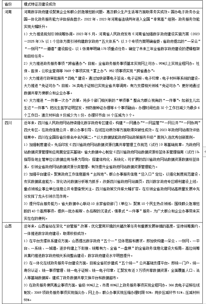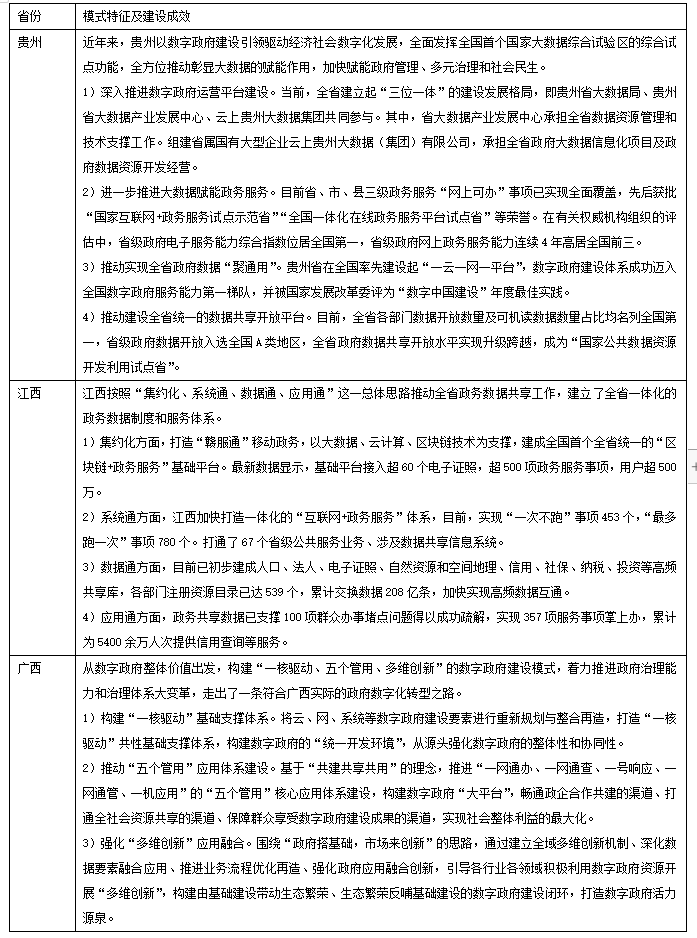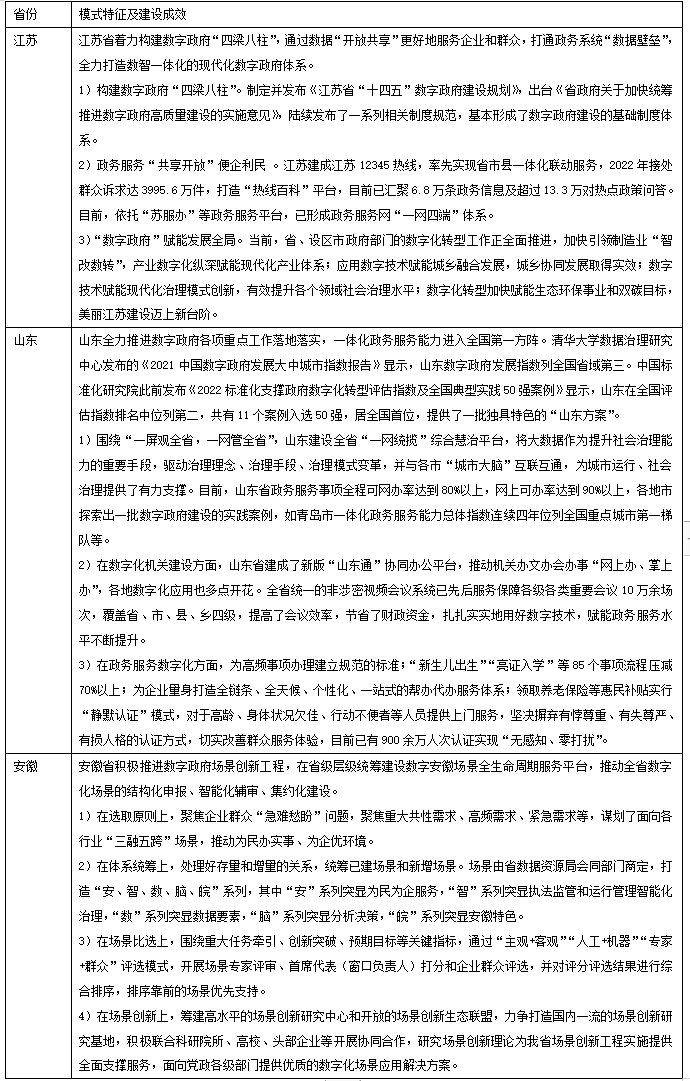 圖表8 特色賦能型部分省市數(shù)字政府建設(shè)模式及成果