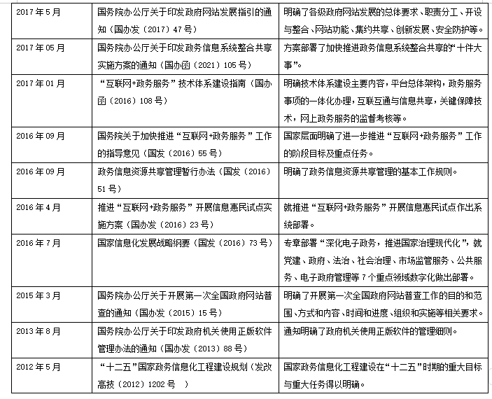 圖表1 黨中央、國務(wù)院近年來關(guān)于數(shù)字政府建設(shè)的重磅文件(數(shù)據(jù)來源:作者據(jù)中國政府網(wǎng)公開信息整理)