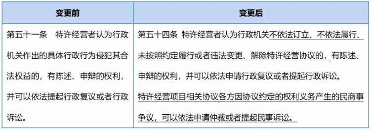 補(bǔ)充特許經(jīng)營(yíng)項(xiàng)目中仲裁及民事訴訟的適用規(guī)定,完善爭(zhēng)議解決制度。《辦法》第五十四條明確,除原規(guī)定的申請(qǐng)行政復(fù)議或提起行政訴訟外,特許經(jīng)營(yíng)項(xiàng)目相關(guān)協(xié)議各方因協(xié)議約定的權(quán)利義務(wù)產(chǎn)生的民商事?tīng)?zhēng)議,可以依法申請(qǐng)仲裁或者提起民事訴訟。