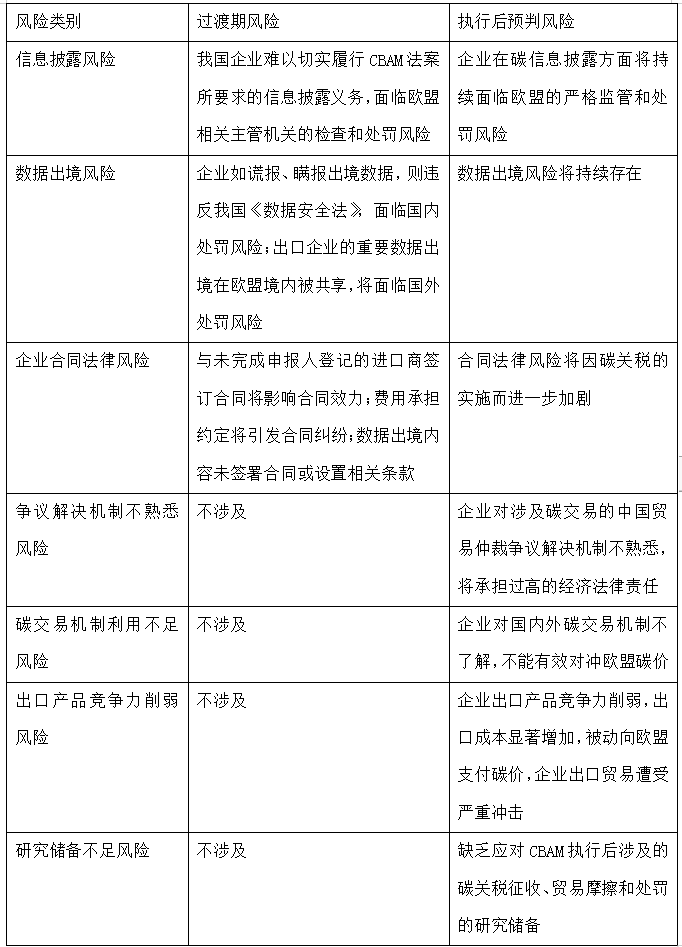 天達共和碳合規(guī)法律服務(wù)律師結(jié)合相關(guān)研究與實際案件將中國企業(yè)在歐盟CBAM中面臨的現(xiàn)實困境按照影響方面、風險類別及潛在后果進行匯總,供大家參閱。