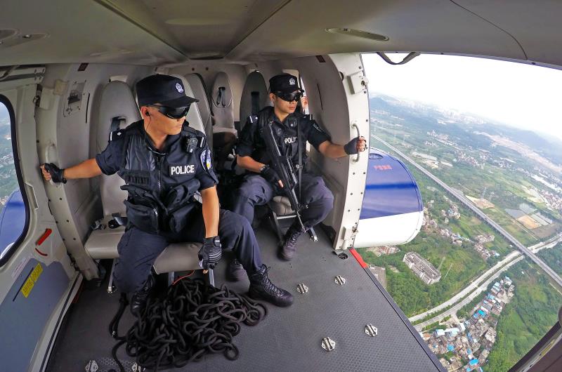 為進一步完善“水、陸、空”立體化治安防控格局,廣東省廣州市警方專門成立警務(wù)飛行巡邏專業(yè)隊伍,通過直升飛機搭載特警力量開展空中巡邏防控,與地面、水上巡邏防控力量聯(lián)勤聯(lián)動。圖為4月9日,廣州特警使用警用直升機開展“地上+空中”巡邏防控?! ?/p>