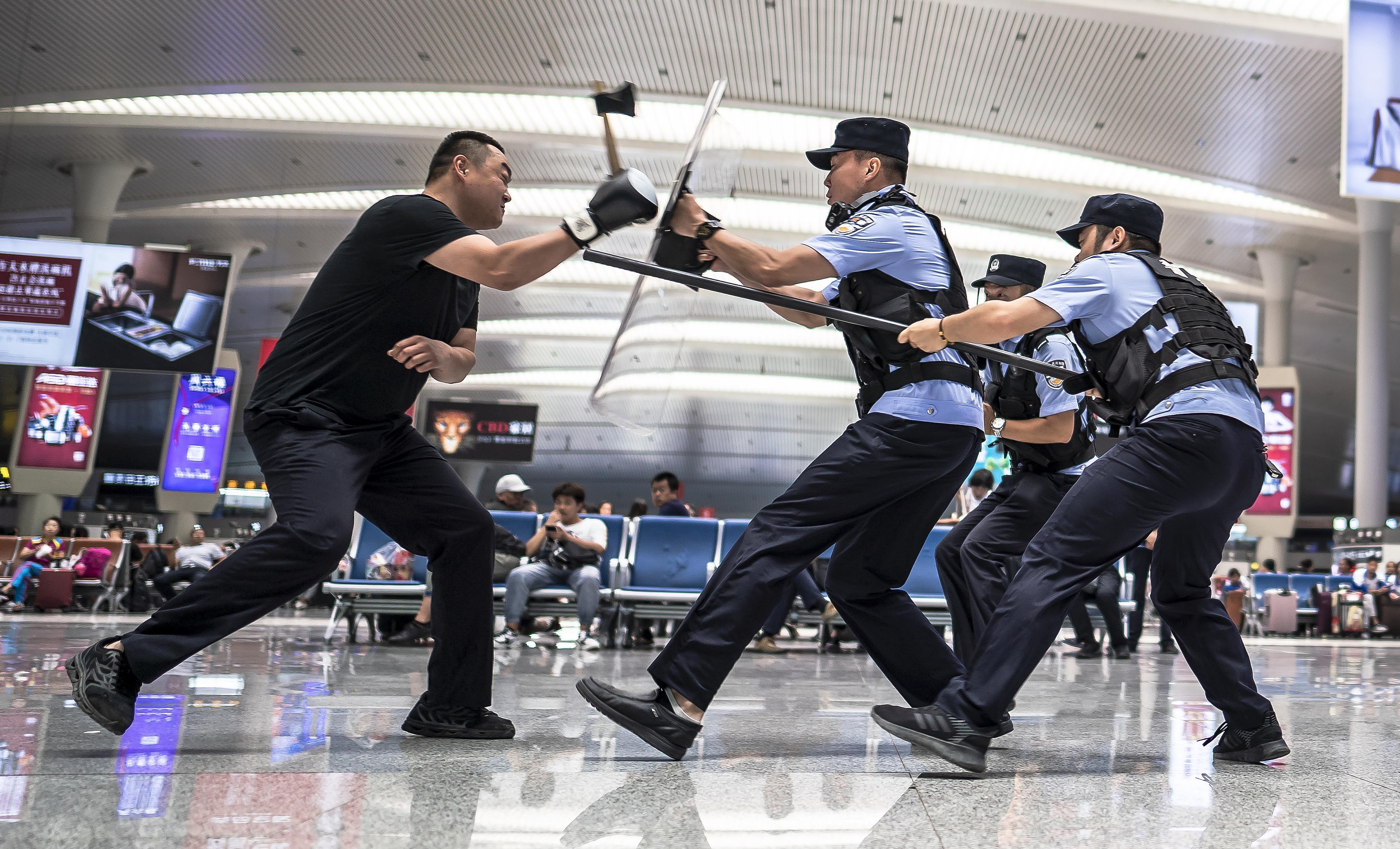 為切實(shí)提高一線民警的反恐防暴應(yīng)急處突能力,8月26日上午,烏魯木齊鐵路公安處烏魯木齊站派出所緊結(jié)合“平安站車路、金盾護(hù)你行”專項(xiàng)活動(dòng),緊密圍繞近期暑運(yùn)大客流以及學(xué)生返校高峰,立足站車反恐維穩(wěn)工作實(shí)際,有針對(duì)性地開(kāi)展了實(shí)戰(zhàn)大練兵活動(dòng)。以車站候車室突然發(fā)生刀斧砍殺為警情,駐站快速反應(yīng)小分隊(duì)接到警情后,在50秒內(nèi)迅速趕赴事發(fā)地點(diǎn),面對(duì)“暴徒”,處置民警根據(jù)現(xiàn)場(chǎng)緊急狀況立即開(kāi)槍擊傷“暴徒”果斷處置,通過(guò)此次演練進(jìn)一步提高了應(yīng)急處突小組在緊急情況下對(duì)突發(fā)恐怖襲擊的快速反應(yīng)能力,達(dá)到預(yù)期目的。
