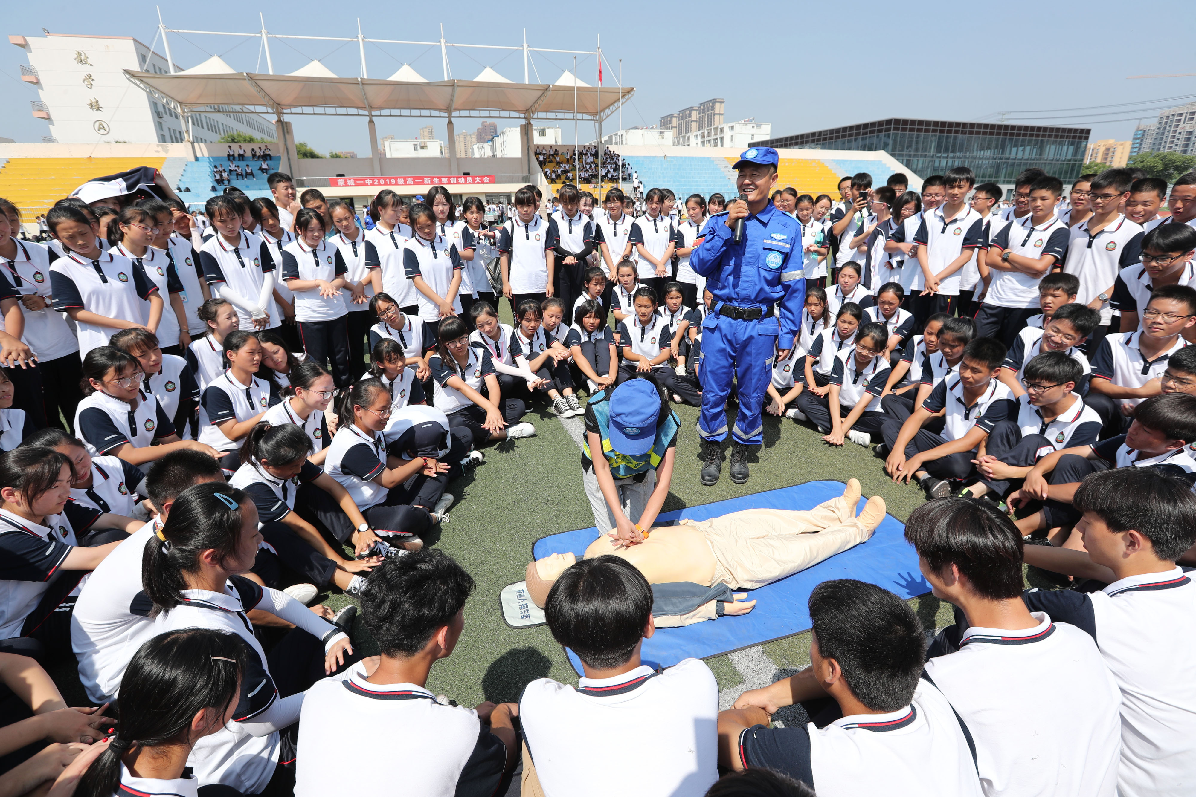 當(dāng)天,安徽省蒙城縣第一中學(xué)邀請縣藍(lán)天救援隊(duì)的志愿者,為參加軍訓(xùn)的高一年級新生開展防溺水及安全知識宣傳,向新同學(xué)傳授心腹復(fù)蘇急救技能,并通過案例講解、救援裝備展示以及現(xiàn)場互動等,教育廣大新生學(xué)期開學(xué)要時(shí)刻牢記安全,珍愛生命。