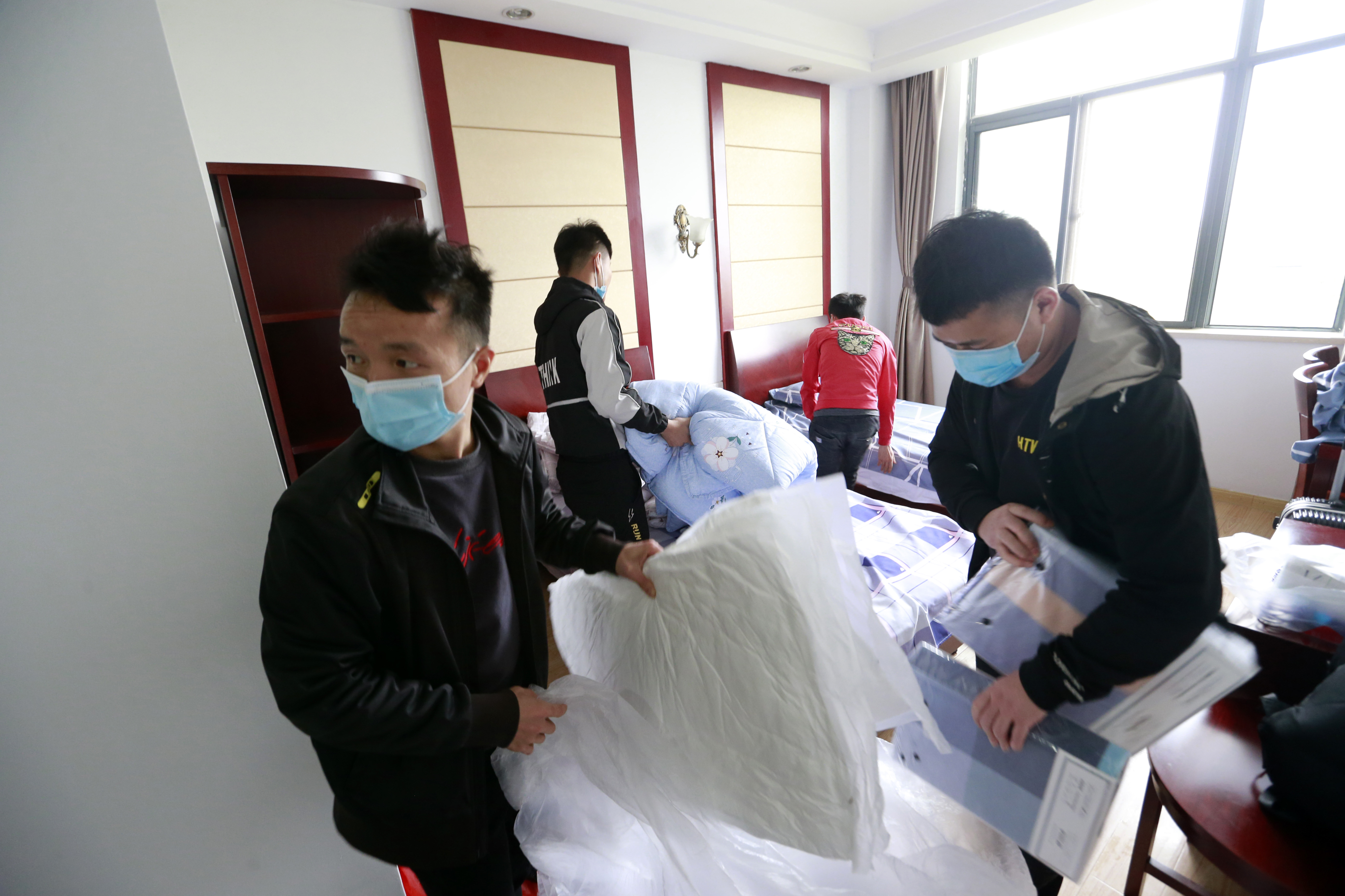 4月19日,來(lái)南京之前,南京港出入境邊防檢查站工作人員就叮囑楊校詢和小伙伴們只需帶上換洗衣物,其他的被褥和生活用品都買好了,他們?cè)诜块g整理新被褥。