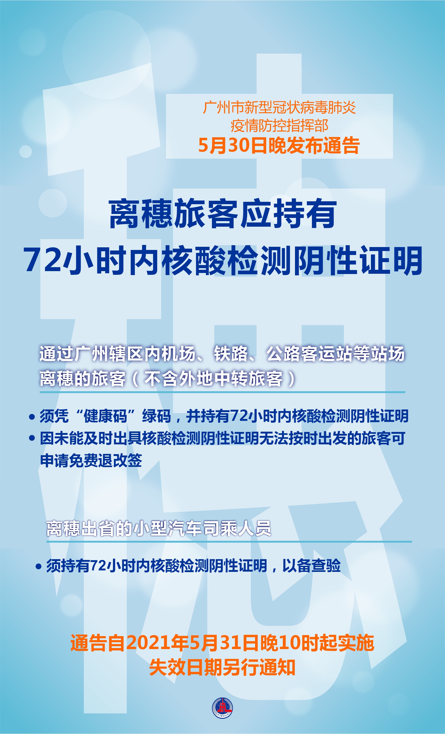 海報:離穗旅客應(yīng)持有72小時內(nèi)核酸檢測陰性證明