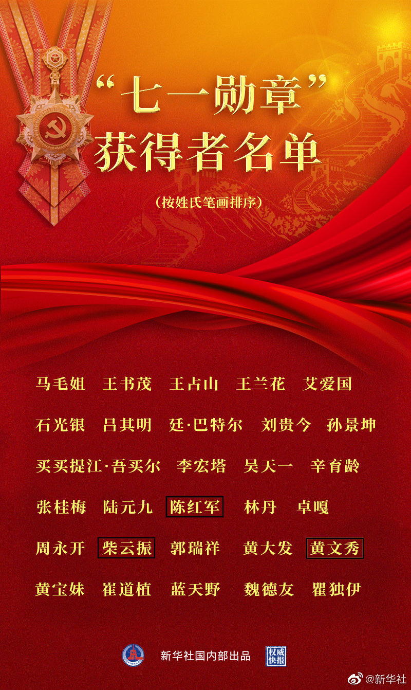海報:“七一勛章”獲得者名單