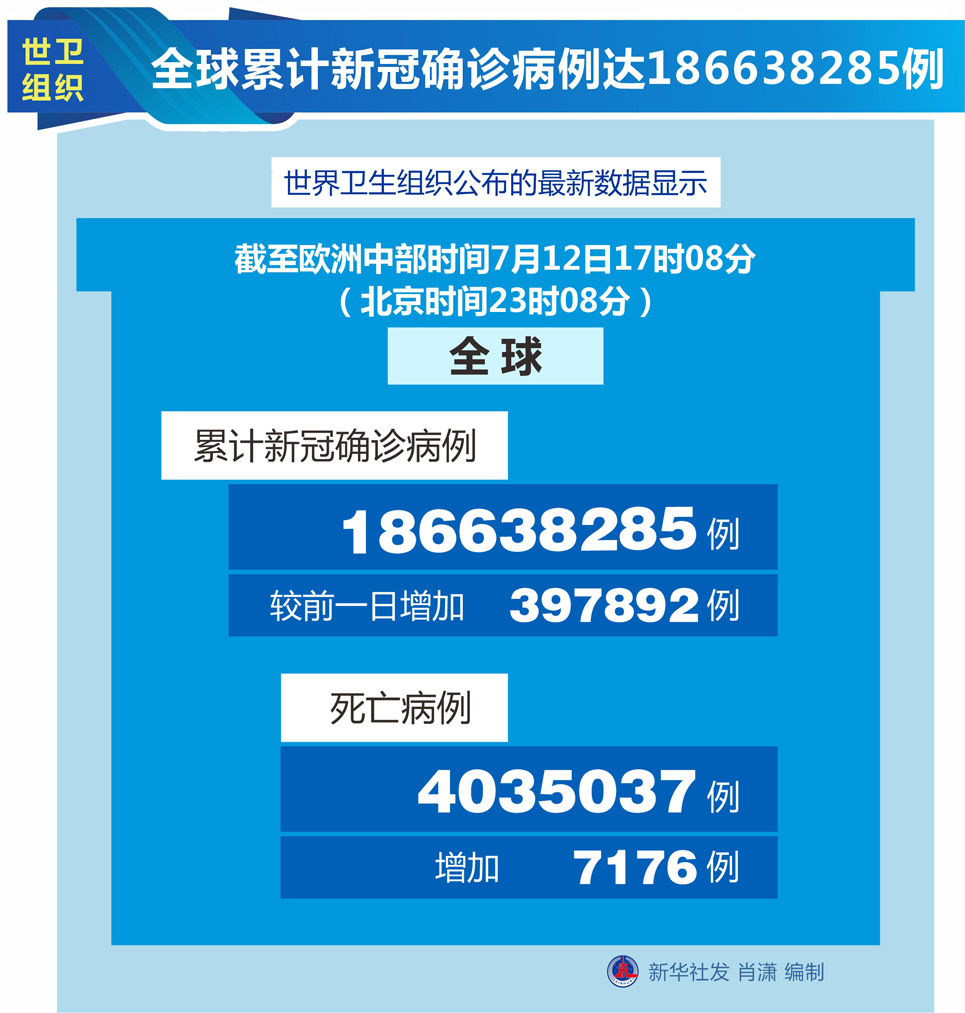 圖表:世衛(wèi)組織:全球累計新冠確診病例達186638285例