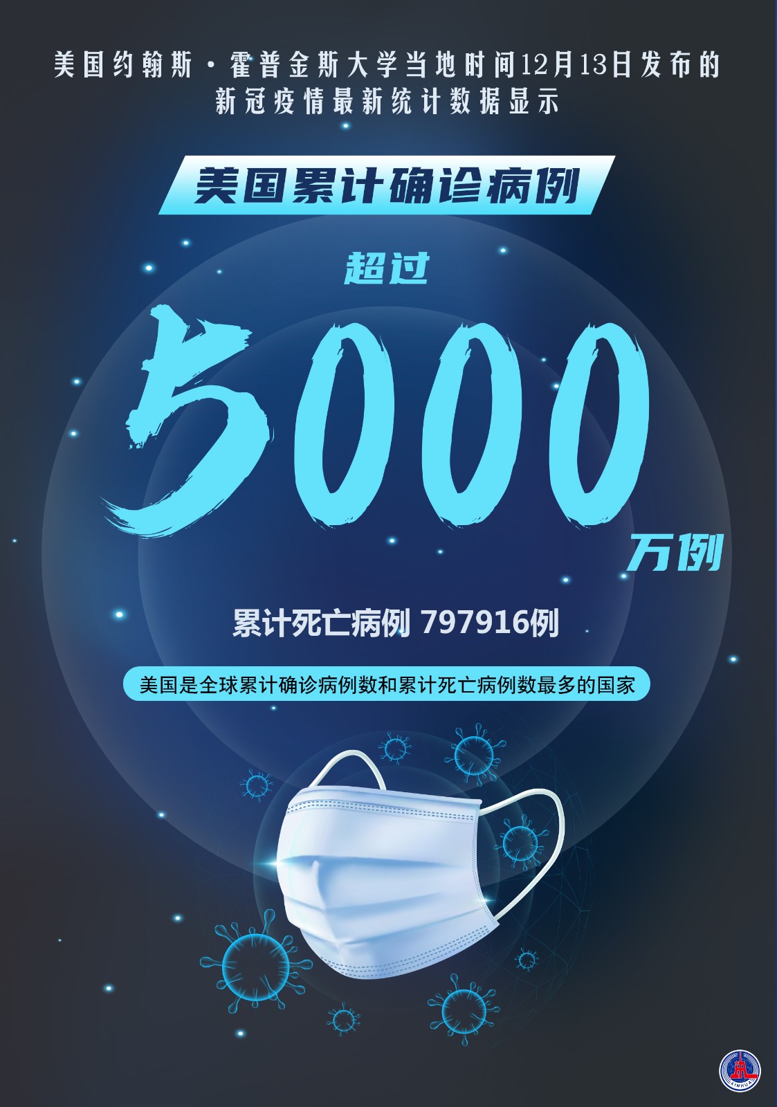 海報(bào):約翰斯·霍普金斯大學(xué):美國(guó)累計(jì)新冠確診病例超5000萬(wàn)例