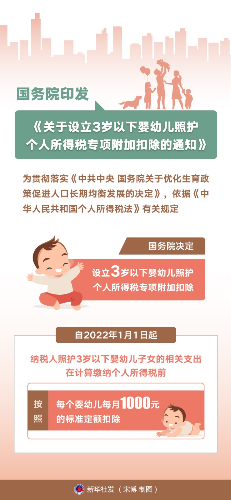 圖表:國務院印發(fā)《關于設立3歲以下嬰幼兒照護個人所得稅專項附加扣除的通知》