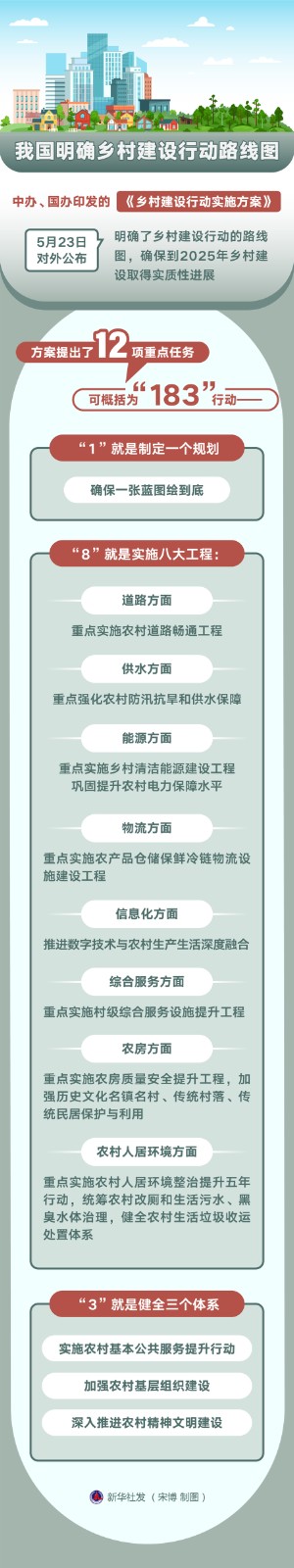 中辦、國(guó)辦印發(fā)的《鄉(xiāng)村建設(shè)行動(dòng)實(shí)施方案》5月23日對(duì)外公布,明確了鄉(xiāng)村建設(shè)行動(dòng)的路線圖,確保到2025年鄉(xiāng)村建設(shè)取得實(shí)質(zhì)性進(jìn)展,農(nóng)村人居環(huán)境持續(xù)改善,農(nóng)村公共基礎(chǔ)設(shè)施往村覆蓋、往戶延伸取得積極進(jìn)展,農(nóng)村基本公共服務(wù)水平穩(wěn)步提升,農(nóng)村精神文明建設(shè)顯著加強(qiáng)。