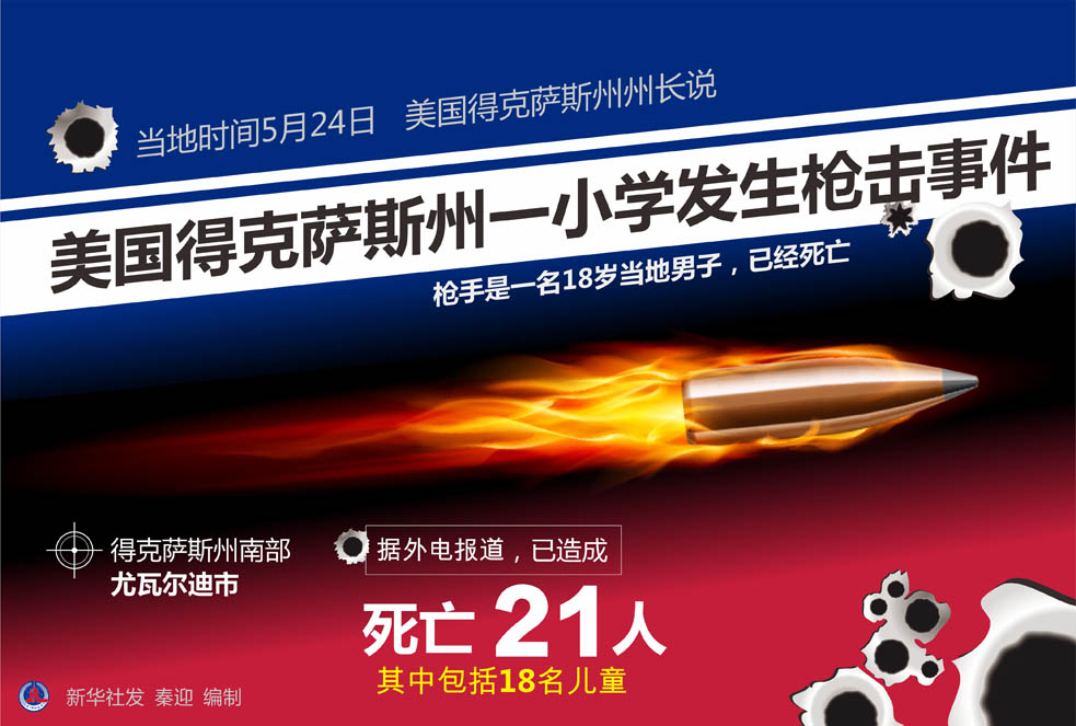 美國得克薩斯州州長阿伯特5月24日說,得克薩斯州南部尤瓦爾迪市一所小學(xué)當(dāng)天發(fā)生槍擊事件。
