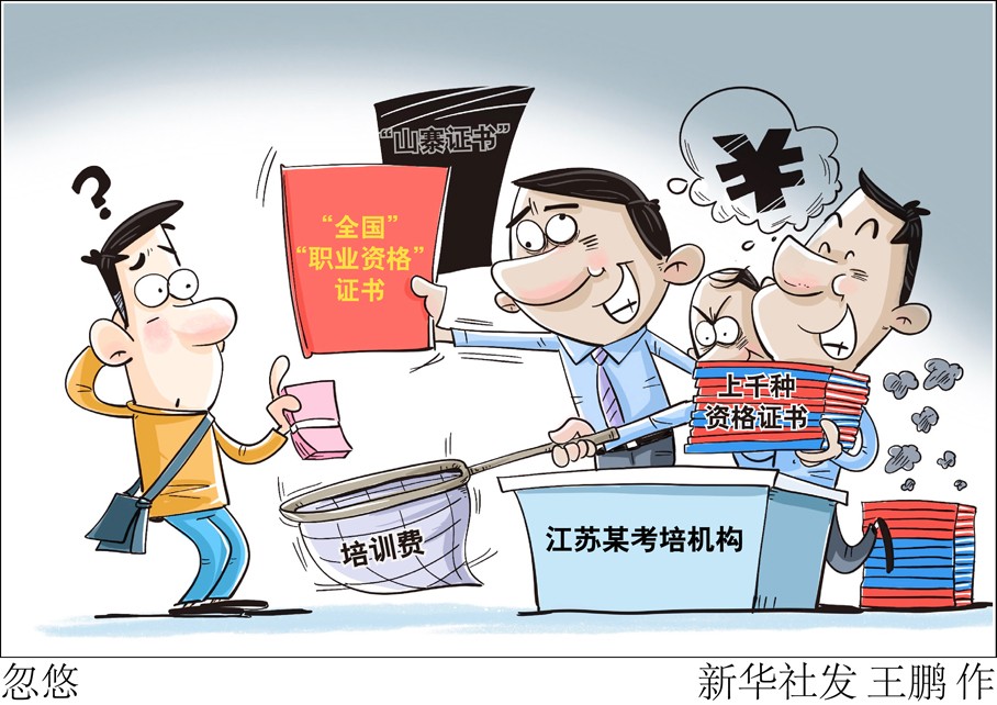 “新華視點(diǎn)”記者實(shí)地走訪發(fā)現(xiàn),該公司僅有2間辦公室,20多人辦公,卻開發(fā)了1730個(gè)職業(yè)資格考試項(xiàng)目,宣稱已發(fā)證128萬張。