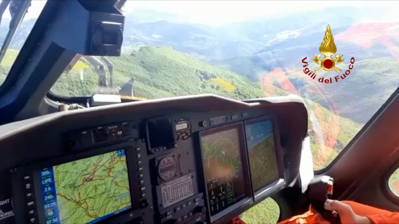 6月10日,消防部門人員駕駛直升機在意大利中部地區(qū)搜尋失蹤的直升機。