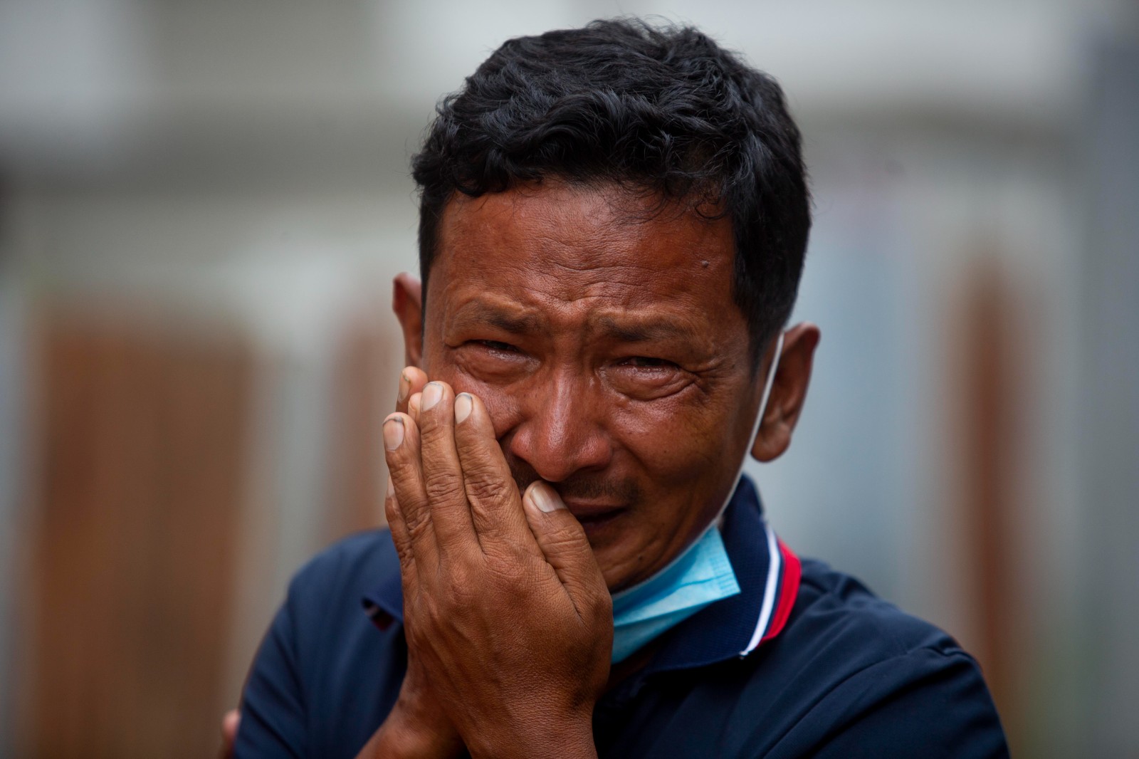 5月31日,墜毀客機遇難者家屬在尼泊爾加德滿都一所醫(yī)院外哭泣。