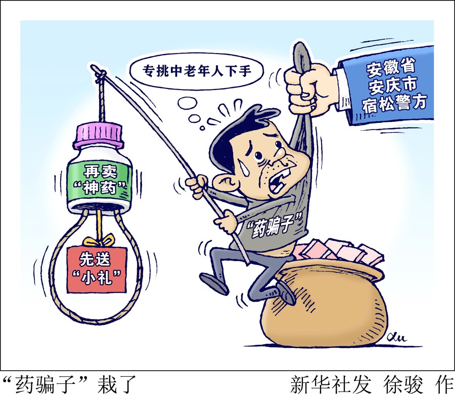 評書機、老人鞋等“小禮”請先笑納,“包治百病”的“神藥”快來試試?小心“騙你沒商量”!記者日前從安徽省安慶市宿松縣公安局了解到,當?shù)鼐酱虻粢粋€向中老年群體虛假宣傳兜售藥品進行詐騙的犯罪團伙,全國多地數(shù)千人上當,涉案金額近千萬元。