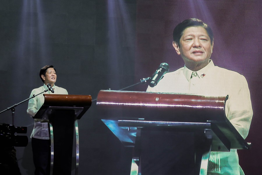 6月10日,菲律賓當(dāng)選總統(tǒng)費(fèi)迪南德·羅慕爾德茲·馬科斯在馬卡蒂出席第二屆“中菲相知獎”頒獎典禮時發(fā)表講話。